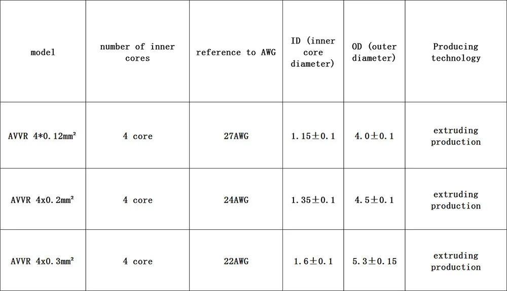 Параметры: Avvr 2/3/4/6/8/10 core и других ядер * 0,12 м ㎡ (ссылка на 27AWG) Avvr 2/3/4/6/8/10 core и других ядер * 0 .. 2 м ㎡ (ссылка на 24AWG) Avvr 2/3/4/6/8/10 core и других ядер * 0,3 м ㎡ (ссылка на 22AWG) Avvr 2/3/4/6/8/10 core и других ядер * 0,5 м ㎡ (ссылка на 20AWG) Материал проводника: высокочистая тонкая бескислородная медь Номинальная Напряжение: 300/300V Изоляционный материал: эластичный ПВХ Материал внешней куртки: эластичный, огнестойкий ПВХ Применение обшитой линии: для передачи сигнала противоугонной системы сигнализации, системы домофона здания, линии внутреннего контроля электрического управления, компьютера, инструмента и электронного оборудования и оборудования автоматизации.
