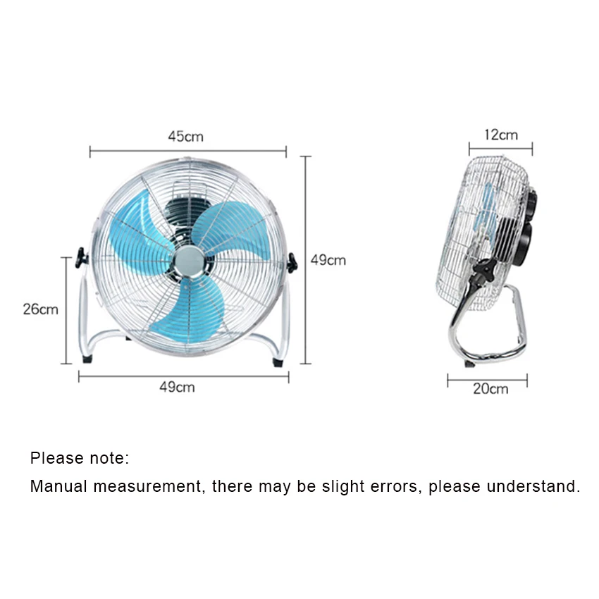 Напольный вентилятор с алюминиевым листом, большой ветровой вентилятор 1200 об/мин, 220 В