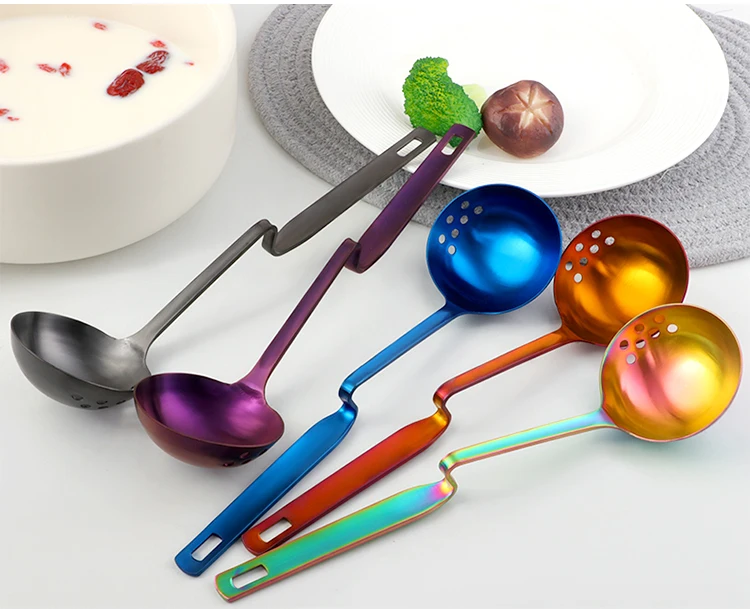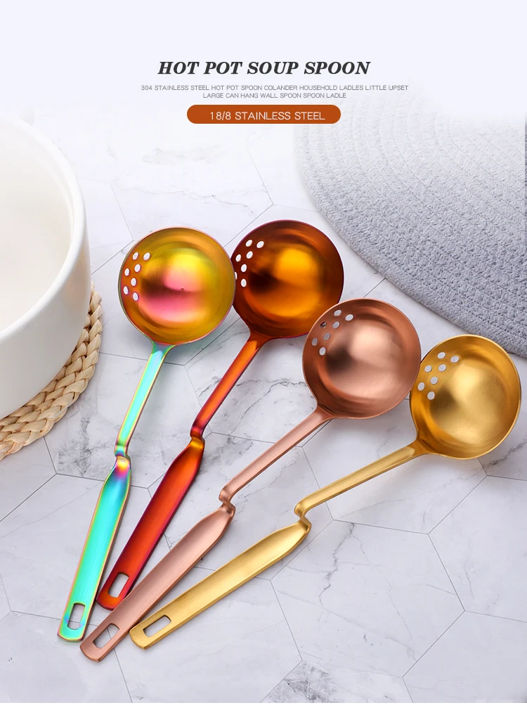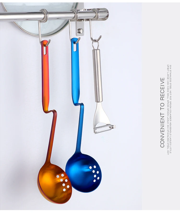 1 шт. кухонная посуда из нержавеющей стали матовая длинная ручка подвесная настенная ложка ковш горячий горшок дуршлаг для супа с крючком Ложка инструменты для приготовления пищи