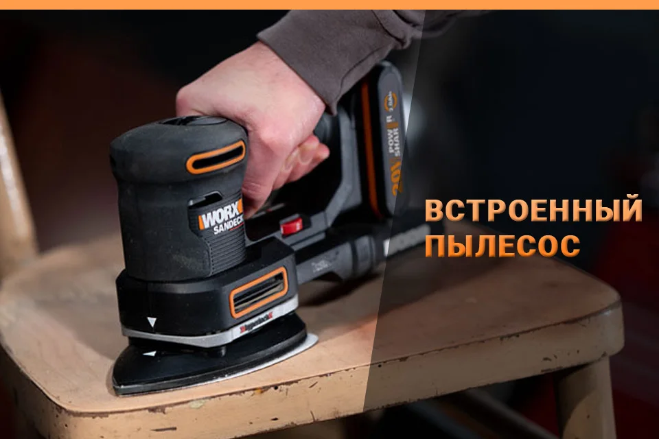 Благодаря 5-ти сменным подошвам шлифовальную машину можно использовать для обработки ровных и изогнутых поверхностей. WORX WX820 может применяться в качестве дельты, вибрационной или эксцентриковой шлифовальной машины.