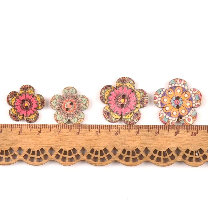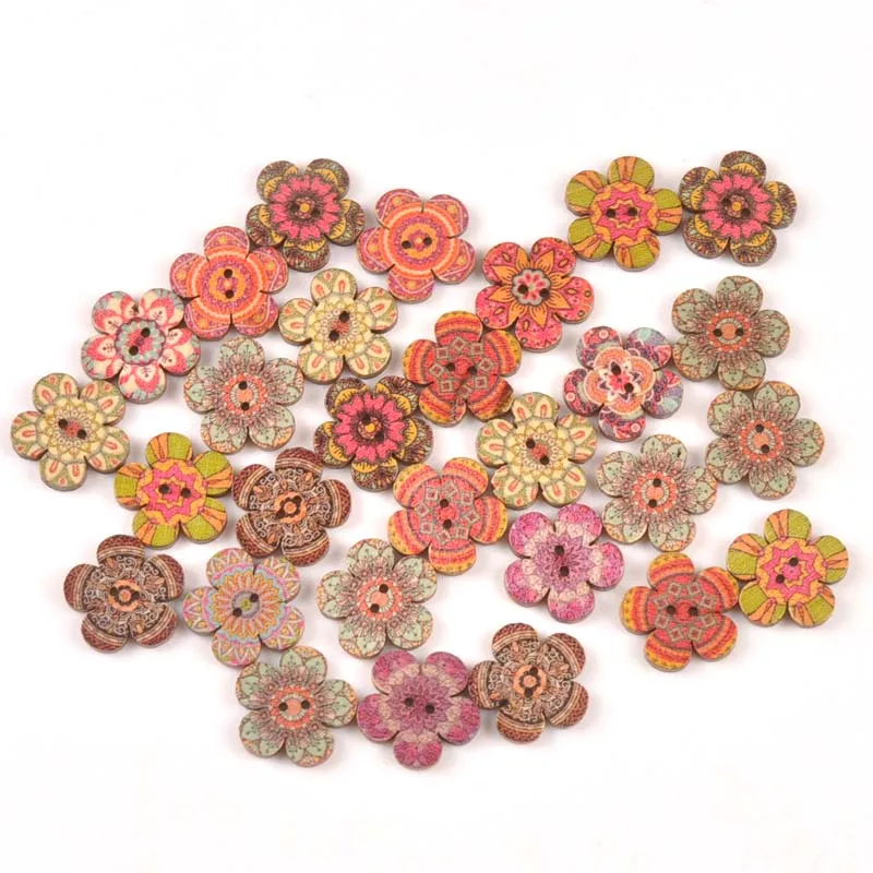 Смешанный цветочным узором деревянные декоративные пуговицы для пришивания одежда Скрапбукинг ремесла домашнего декора, 50 шт в наборе, 20/25 мм MT2511