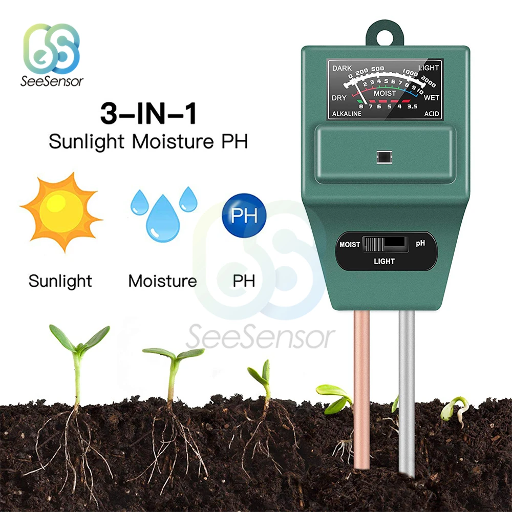 Описание: Функции: вы можете узнать растение, когда вода, и если он имеет достаточный солнечный свет, также вы можете проверить уровень ph в грунте, что вы можете настроить ph на соответствующий уровень, используя этот измеритель влажности 3 в 1. Простота в использовании: Этот Влагомер 3 в 1 с функцией тестирования на светильник и ph не требует батарей, и вы можете использовать его в помещении или на открытом воздухе. Вставьте зонд в почву около 2-4 дюймов, затем переключите переключатель для проверки того, что вы хотите измерить. Точность чтения: Диапазон влажности: 1-10 (1-3 сухих, 4-7 нор, 8-10 влажных), относительный светильник: 0-2000 люкс (0-200 низких, 200-500 низкая +, 500-1000, ни, 1000-2000 высокое), диапазон pH: 3,5-8ph (3,5-6,5 кислота, размером 7-8 щелочной). Внутренний/наружный дизайн: легкий и портативный дизайн, удобный для использования в помещении и на открытом воздухе. Широкое использование: Этот измеритель влажности почвы 3 в 1 является идеальным набором для тестирования почвы для ухода за растениями, дома и сада, лужайки, фермы. Jellas 3-в-1 влажности почвы/устройство контроля pН/измеритель солнечного света -- завод уход помощник Этот 3-в-1 влажности почвы метр предназначен для того, чтобы лучше узнать состояние вашего завода, контроля влажности почвы, поможет вам контролировать Кислотность почвы и посмотреть, получает ли растение достаточное количество солнечного света, чтобы растения становились здоровыми. Характеристики: Диапазон влажности: 1-10 (1-3 сухих, 4-7 нор, 8-10 влажных). Относительный светильник: 0-2000 люкс (0-200 Low, 200-500 Low +, 500-1000 Nor, 1000-2000 Hgh). Диапазон pH: 3,5-8 pH (3,5-6,5 кислота, размером 7-8 щелочной). Цвет: зеленый Как использовать: Шаг 1: Переключение на положение влаги/pH/светильник. Шаг 2: вставьте зонд в почву около 2-4 дюймов. Шаг 3: Отрегулируйте положение зонда до тех пор, пока указатель на циферблате не начнет слегка поворачиваться. Шаг 4: через 10 минут прочтите уровень влажности/pH/светильник в циферблате. Шаг 5: Удалите Зонд из почвы и протрите после каждого использования. Посылка включает в себя:1x3 в 1 прибор для измерения PH почвы растений, измеритель влажности, светильник, гидропонный анализатор детектор для сада, гигрометр