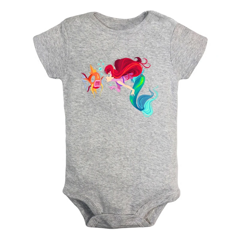 Милый костюм Русалочки Ариэль Белль рыбы для новорожденных мальчиков и девочек Комбинезон с короткими рукавами с принтом; боди для младенцев