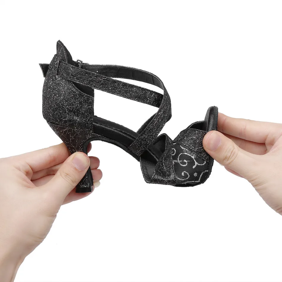 Черные туфли для латинских танцев; женские туфли для сальсы; женские туфли для латинских танцев; танцевальные туфли для взрослых с сеткой; обувь на Кубинском каблуке; LJSENTENCE