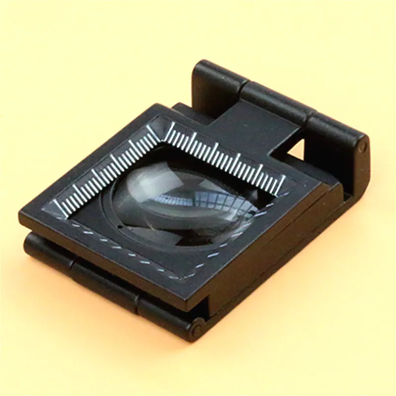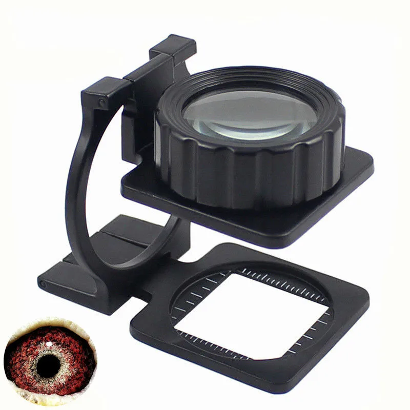 Сложите лупу и поместите ее выше объекта, который будет наблюдаться, чтобы объектив был параллельен линии зрения (когда изображение становится чистым и максимальное увеличение является лучшим). Найдите наиболее подходящее положение для просмотра при перемещении объекта для наблюдения.