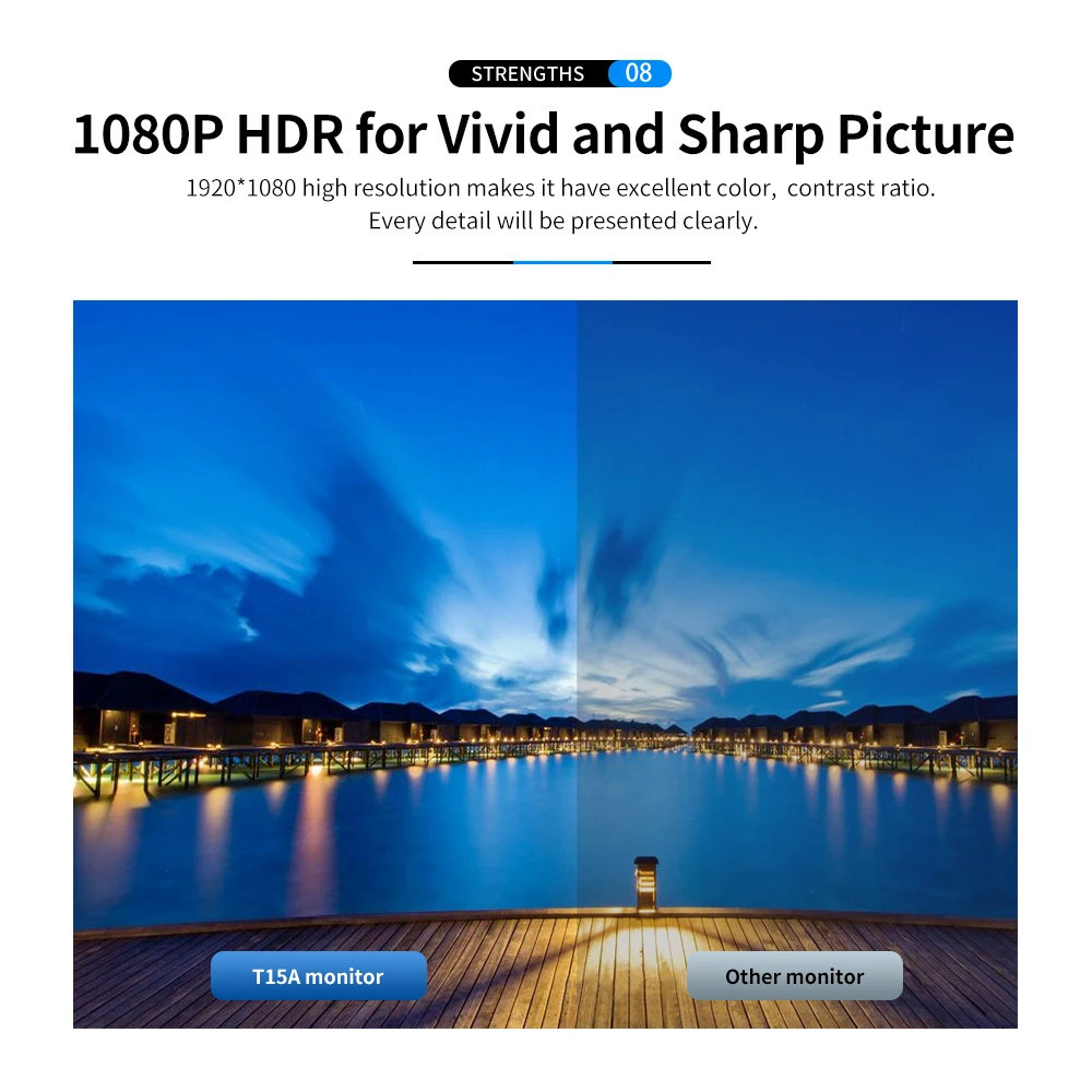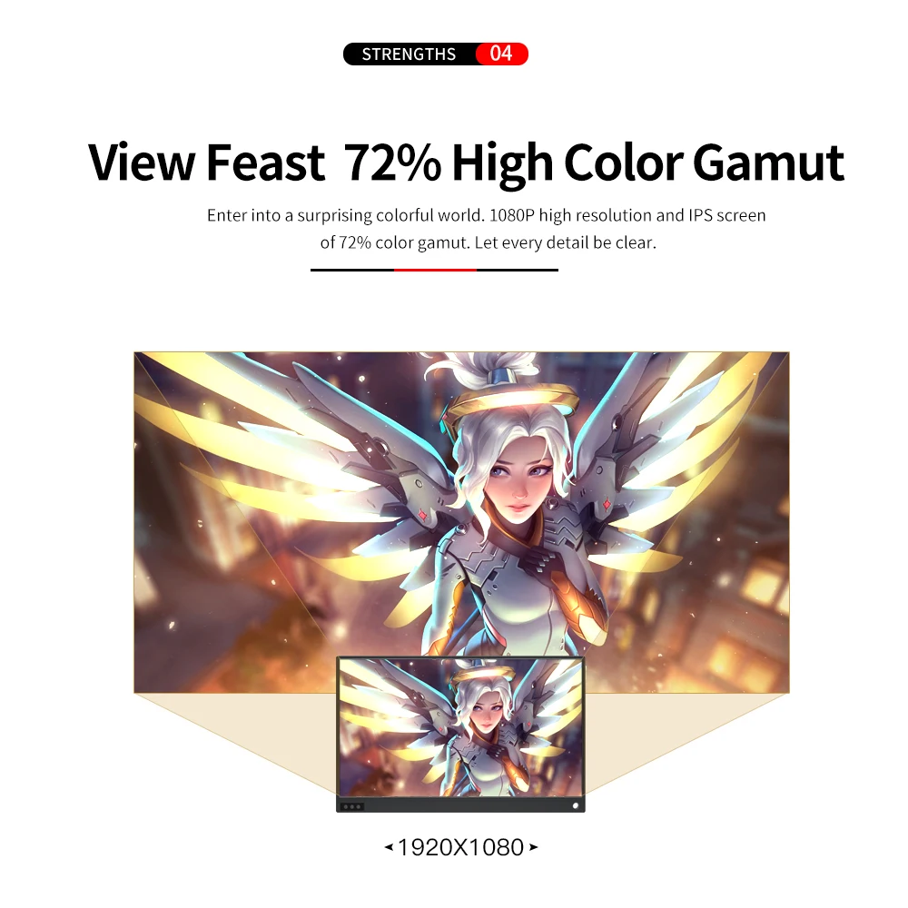 Наслаждайтесь более удобной жизнью. Этот портативный монитор гладкий и легко носить с собой. 1920*1080 Высокое разрешение дает вам отличный опыт просмотра. Будучи портативным, вы можете взять его для путешествия или деловой поездки. Играйте в игру и смотрите фильмы на кровати.