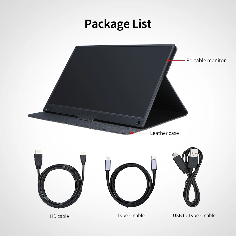 Посылка:1 * портативный монитор1 * кожаный чехол1 * кабель Type-C-HDMI1 * кабель типа C-Type-C1 * кабель Type-C-USB2.01 * Адаптер питания (