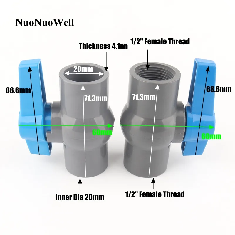 25 шт. 20 мм ПВХ шаровой клапан 1/2 "Женский резьбовой шаровой клапан садовые ирригационные водопроводные соединители инструменты для аквариума синяя ручка