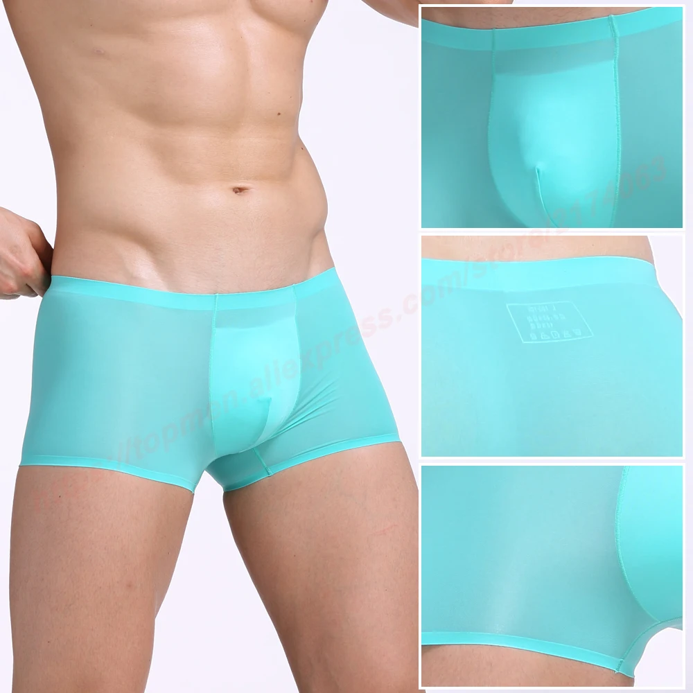 Мужские Прозрачные Боксеры, сексуальные, выпуклые, гей, мужские трусы, мягкое, крутое, ледяной шелк, мужское нижнее белье, u-образные шорты