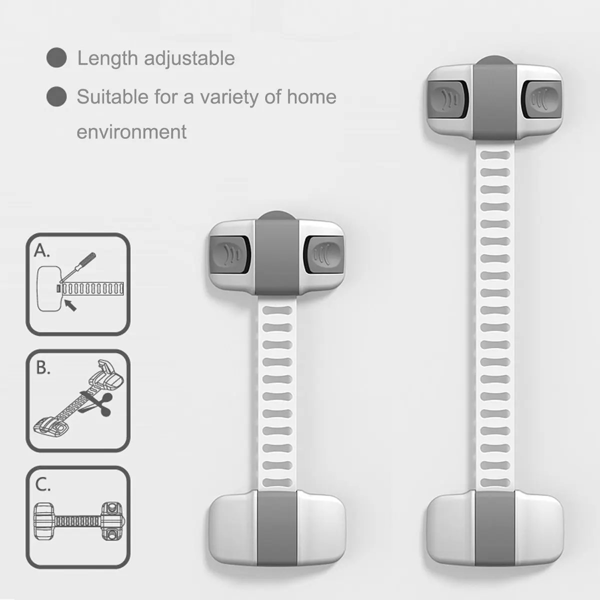 Об этом продукте Универсальный-подходит для дверей шкафа, холодильников, ящиков, сидений для унитаза и т. Д. Защищает вашего ребенка от травм. Регулируемый, регулируемый для различных мест установки. Двойная страховка-двойная кнопка скольжения создает дизайн, который защищает детей от открытия лучше, но может быть легко использован взрослыми. Высокое качество и долговечность-они изготовлены из высококачественной, нетоксичной ABS смолы и полиэтилена, регулируемые для использования в плоских и углах. Легко удалять-закрепите с помощью фена, пока клей не размягчится, и вы легко удалите изделие. По умолчанию цвет серый. Если у вас есть требования к цвету, пожалуйста, обратите внимание при размещении заказа. Спасибо за понимание.