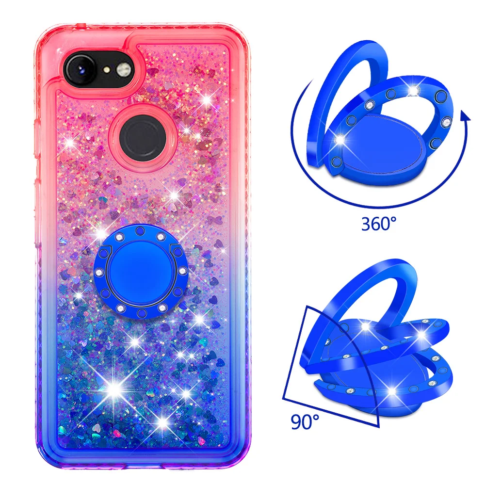 Чехол с блестками для девочек, градиентный зыбучий песок, для Google Pixel 3 3a XL, чехол с кольцом-держателем, ТПУ, бампер, защитный чехол, сумка