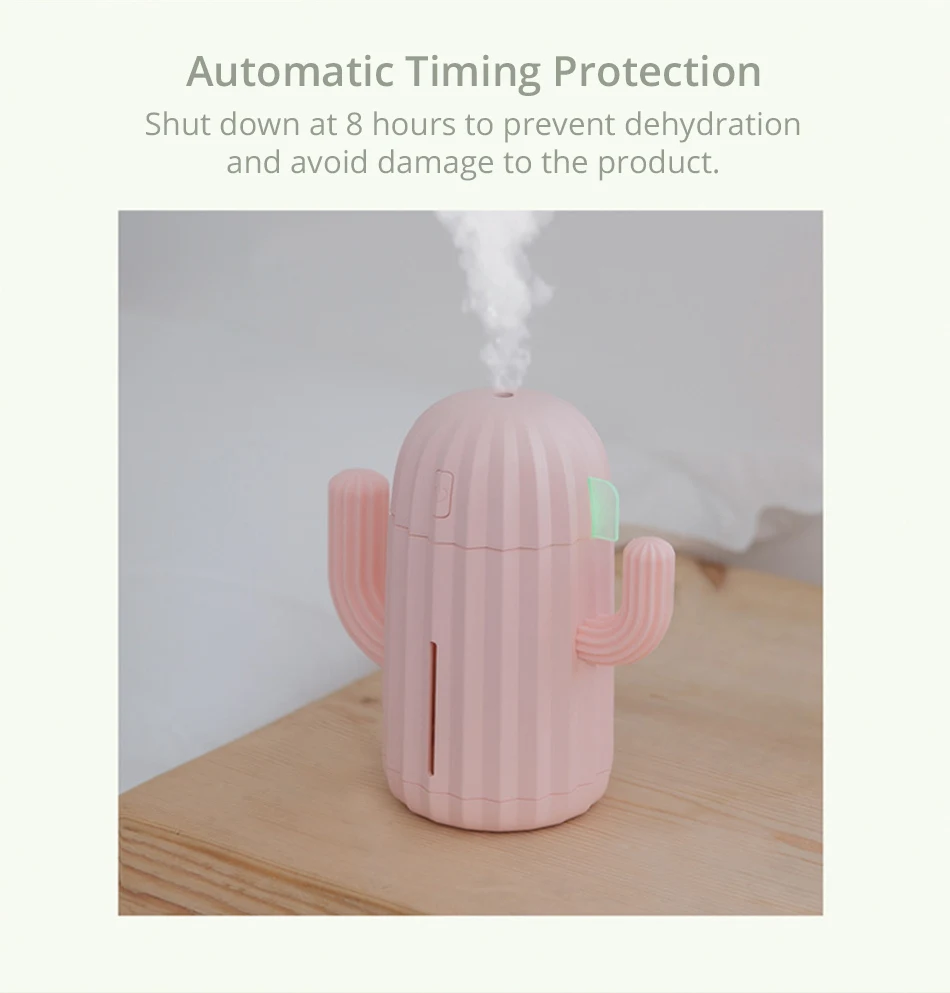 -100% новый бренд и высокого качества-тихий и постоянно Управление не мешают вашей работы, сна и езды на автомобиле. -Диффузный туман на протяжении всего живого пространства и увеличивает влажность кожи. -Мягкий силиконовый зеленый материал, симпатичная форма кактуса, помощник декомпрессии-отключение питания по таймингу против сухости-красочный атмосферный Ночной светильник-бесшумное увлажнение