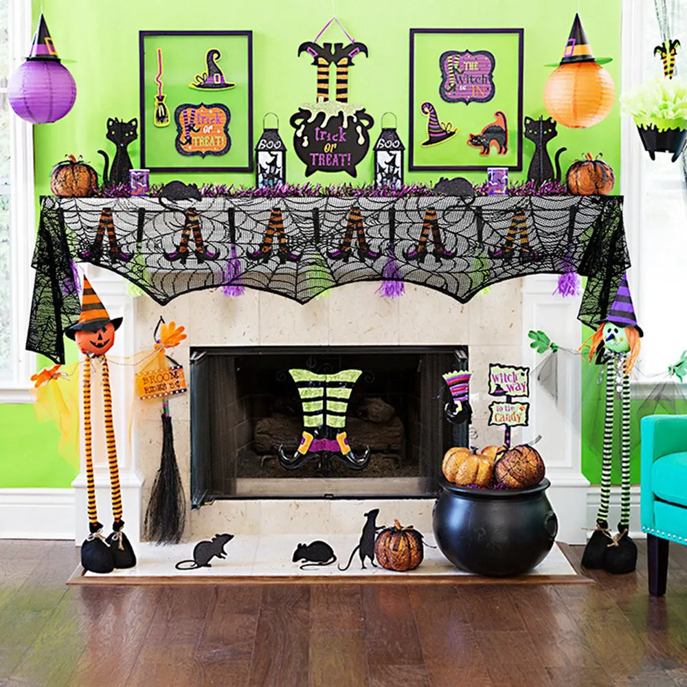 Хэллоуин украшение кружева черный паук веб скатерть каминная доска шарф для Хэллоуин благодарения вечерние праздничные принадлежности