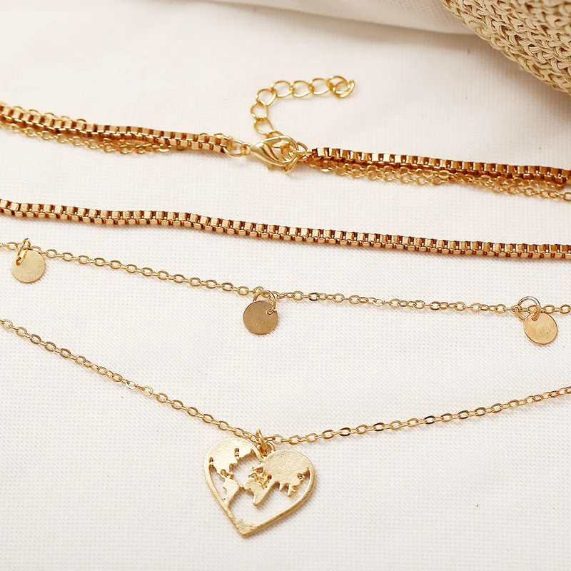 1. Многослойный дизайн, с картой мира в форме сердца и подвеской в виде вафель. 2. Ожерелье с подвеской изготовлено из высококачественного материала, довольно элегантно. 3. Легко сочетается с вашей одеждой, будьте готовы к последнему тренду. 4. Подходит для многих случаев, добавьте стильный элемент. 5. Случаи: Вечерняя вечеринка, банкет, шопинг, дата, подарок.