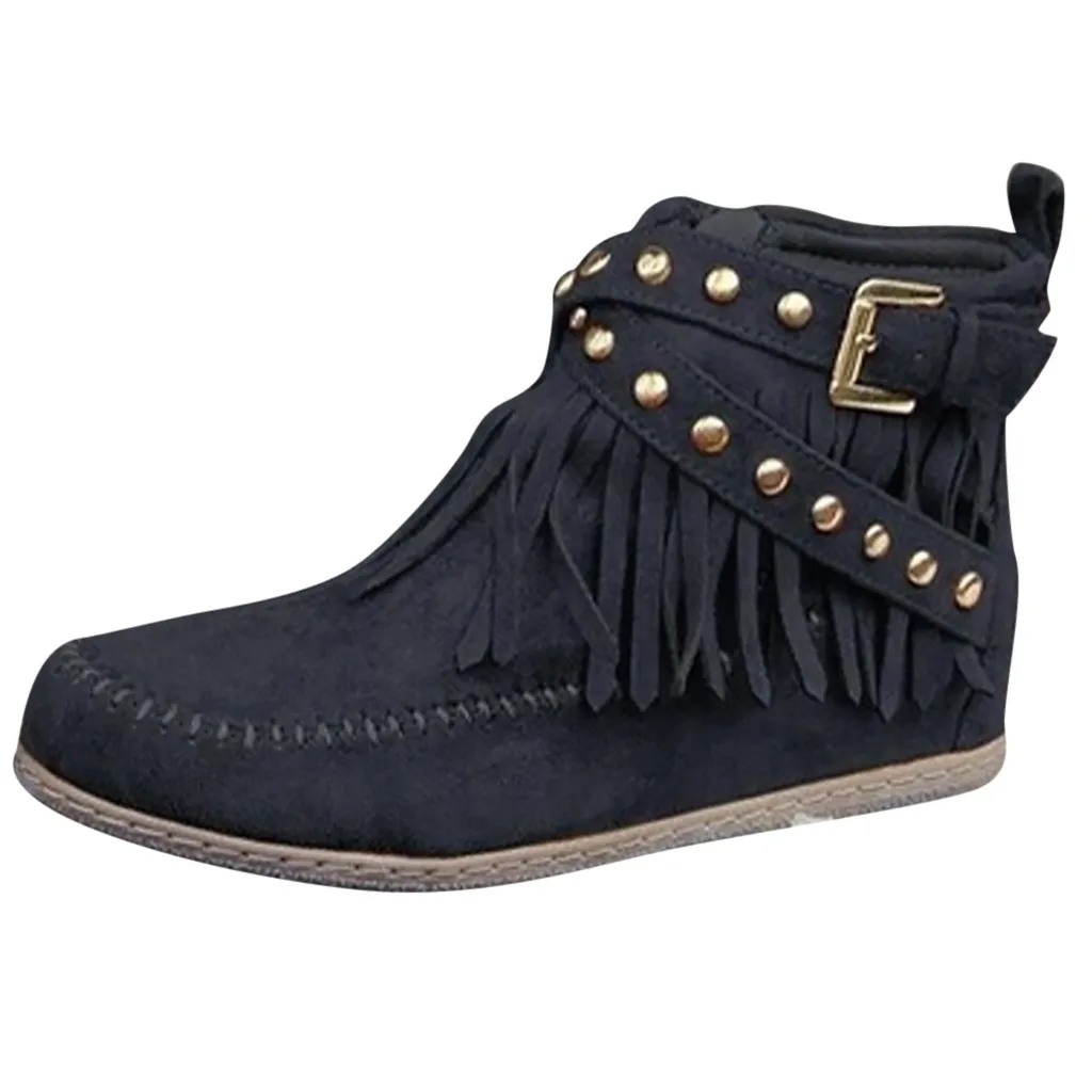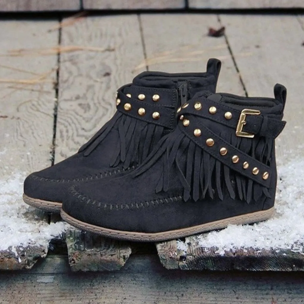 Женские ботильоны с бахромой, ботильоны с боковой молнией и заклепками, большие размеры