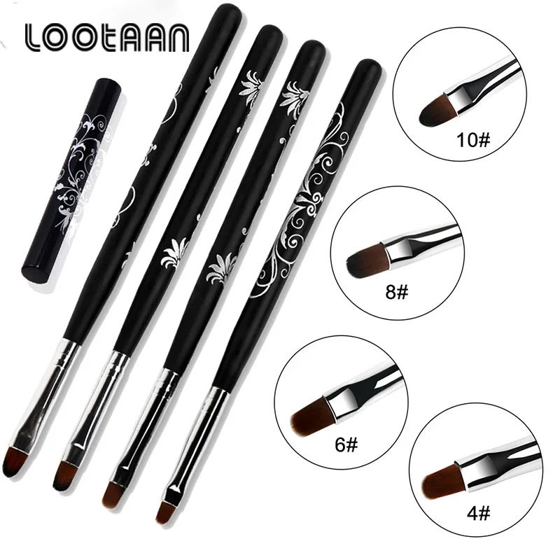 Lootaan #4 #6 #8 #10 УФ-гель для дизайна ногтей кисть для ногтей черная деревянная ручка резные цветы инструменты для маникюра ногтей