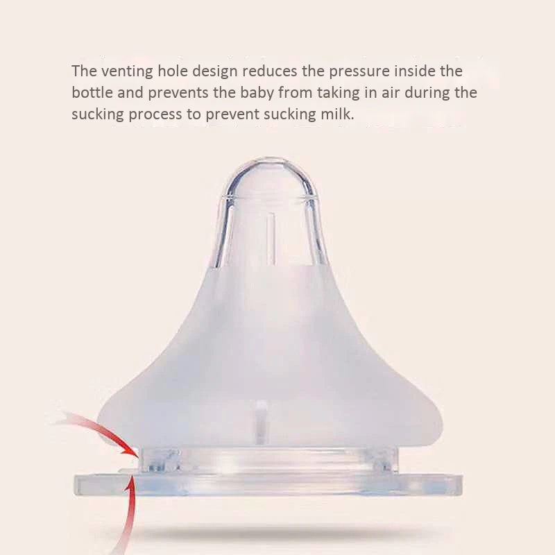 100% силиконовая соска; супер мягкая и гибкая, обеспечивает естественное и гладкое движение языка. Система вентиляции воздуха уменьшает потребление газа, может быть причиной колика