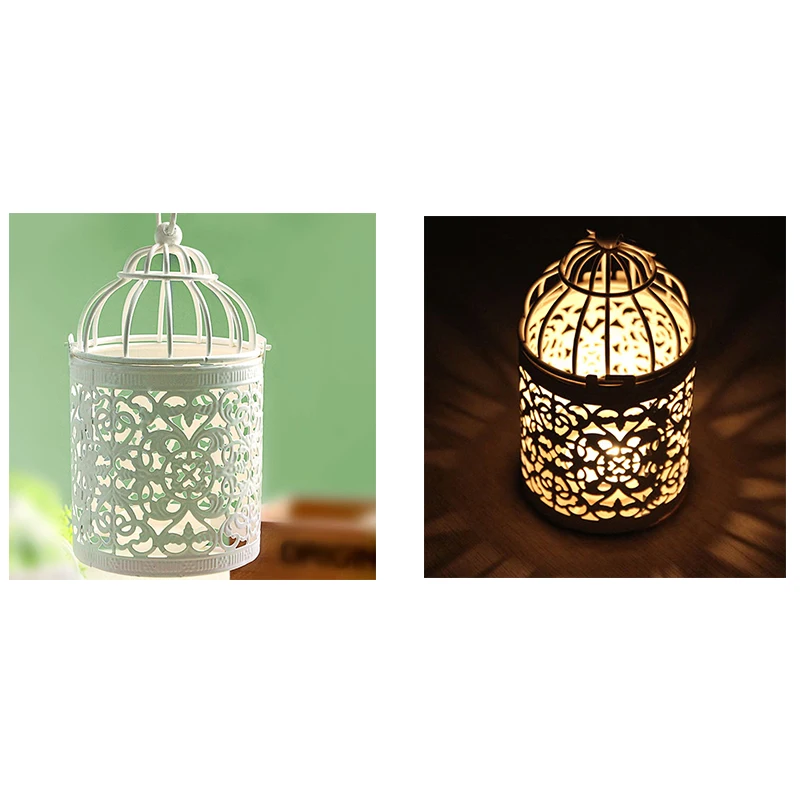 Белый Металл полый узор подсвечник художественный фонарь украшение птица в клетке Марокко подвесные фонари украшение дома аксессуары 30