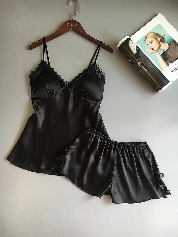 Женская сексуальная Однотонная ночная одежда, комплект из 2 предметов, весна-лето 2019