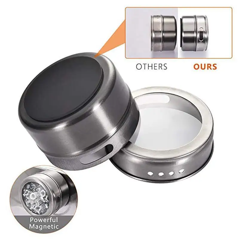 Эти банки для хранения имеют магнитные спинки, которые утолщены, по сравнению с теми же продуктами от других, поэтому их можно плотно прикрепить на холодильник, дверь холодильника или почти любую плоскую металлическую поверхность. Они идеально подходят для RVs или наружных грилей.