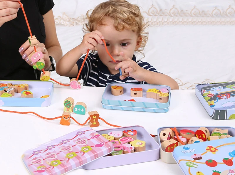 5 видов стилей деревянные детские игрушки DIY Мультяшные фруктовые животные нарезные деревянные бусины игрушка Monterssori Развивающие игрушки для детей