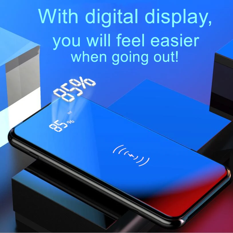 30000 мАч QI Беспроводное зарядное устройство power Bank для iPhone XS Max samsung Внешний аккумулятор с двумя usb-портами зарядное устройство беспроводной внешний аккумулятор