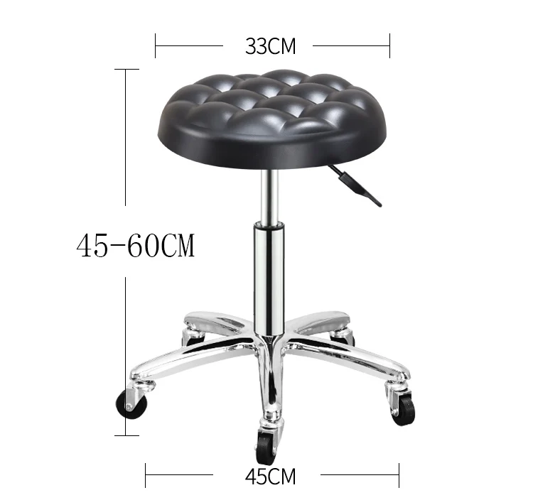 1. Сиденье диаметром 33 см 2. Максимальная высота 60 см 3. Минимальная высота: 45 см 4. Диаметр основания 45 см 5. Допустимая погрешность измерения 1-2 см