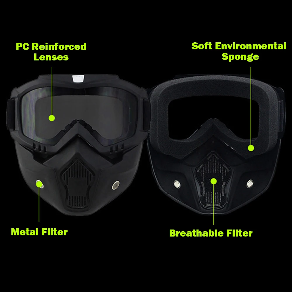 Эта пара очков может защитить ваши глаза во время езды на мотоцикле или велосипеде на открытом воздухе. Маска для лица отлично защищает от ветра и песка. Также он дышащий для специально разработанных вентиляционных отверстий, дающих вам ощущение комфорта при езде.