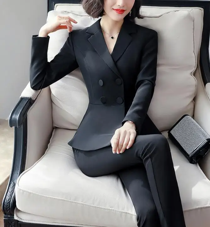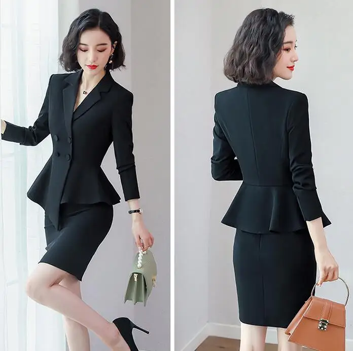 Женский костюм с длинным рукавом и блейзером, комплект из двух предметов, элегантная Офисная Женская одежда, Формальное Деловое платье-карандаш для работы, наряды размера плюс
