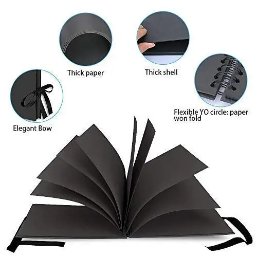 Превосходное качество: картонная коробка крышка, превосходные черные страницы, не выцветает, плотная крафт-бумага. Вращение листа на 360 градусов, фиксируется, когда открывается, сделайте это самостоятельно. Это будет идеальный индивидуальный подарок.