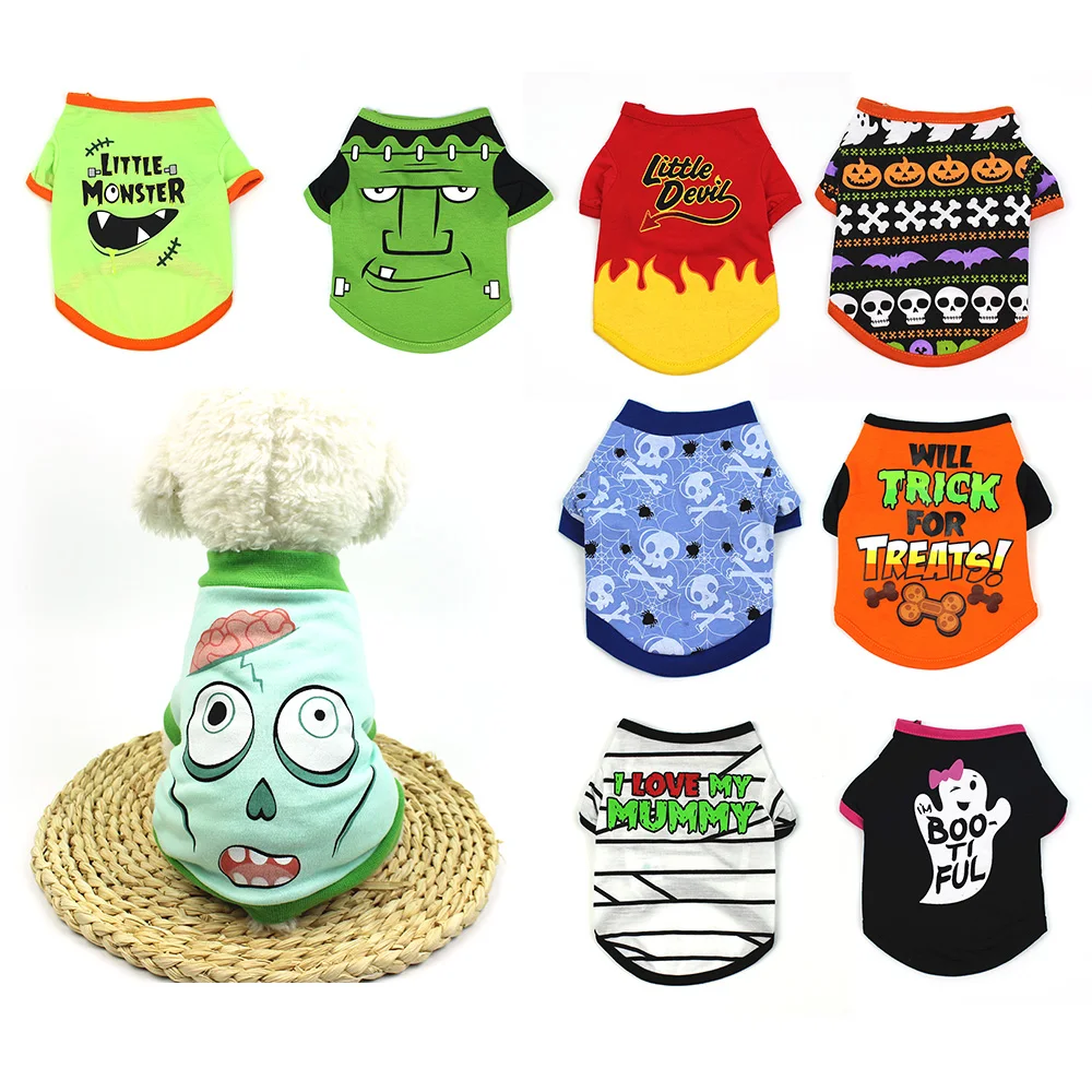 Хлопковая собака Хэллоуин рубашка Pet футболка одежда для домашних животных Хэллоуин украшение для маленьких собак Хэллоуин костюм собаки рубашки