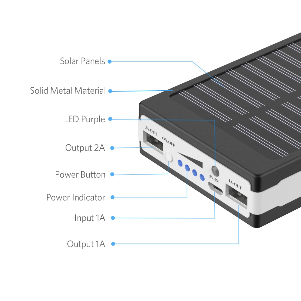 Высокая Ёмкость: Внешний аккумулятор может заряжать ваш iPhone 7 четыре раза. С таким блоком питания на руке, вы никогда не почувствуете себя старым медведем с мертвым телефоном. Солнечный Зарядное устройство дизайн: При путешествиях, Панель солнечных батарейМожет полностью использовать солнечную энергию, удобство и защиту окружающей среды.(Солнечная зарядка является дополнительной, Не полагайтесь на нее для полной зарядки.) 20 светодиодныйСвет :Встроенный 20 светодиодный фонарик гарантирует, что вы сможете найти все даже в темноте. Светодиодный свет потребляет очень мало энергии и функций в течение нескольких дней. 4 Светодиодный индикаторы:Светодиодный индикатор батареи позволяет вам обновлять состояние заряда вашего устройства и банка питания, каждый свет показывает 25% мощности. Двойной Порты usb:С двумя usb-выходами можно одновременно заряжать 2 телефона. Это портативное зарядное устройство отлично подходит для людей, которые находятся в кемпинге, путешествуют, катаются на велосипеде, а также для семьи и друзей. Проще сблизиться друг с другом, поделитесь своим счастье вместе. Широкий Совместимость:Можно легко использовать с большинство марок мобильных телефонов, таких как Apple, samsung, Google, htc, Nokia, LG, медиа-плеер, цифровой фотоаппарат и любые другие электронные устройства. Безопасный и умные часы:Литий-полимерный высоко стабильный и премиум микрочипы обеспечивают надежность и безопасность продукта. Интеллектуальная технология зарядки может автоматически обнаруживать ваше устройство и менять заряд и ток, чтобы лучше всего установить устройство. Технические характеристики: 1. Индикатор заряда батареи, 4-Светодиодный индикатор: показывает состояние уровень мощности 2. 20 шт. светодиодных ламп, 800 люмен (макс) 3. Режим светодиодного освещения: сильный, темнее, стробоскоп, SOS 4. Время работы светодиодного светильника: от 3 до 5 часов (полная мощность) 5. Двойной usb-порт, Выход: DC 5,0 V 2.1A (макс.), 5,0 V 1.0A 6. Входное напряжение/ток: от 5 до 5,5 В/1000 мА 7. Емкость аккумулятора: 100000/300000 мАч 8. Скорость конвертации солнечной энергии: от 7 до 10% 9. Размеры: 125x75x25 мм/4,92*2,95*0,98 дюйма 10. Вес: 320 г/11,29 унций 11. Совместимая модель: по всему миру 12. Цвет: черный, синий, серебристый. Продавец Гарантия Гарантия возврата денег на 30 дней 18 месяцев гарантии замены Срок службы продукта Поддержка гарантия 100% удовлетворенности наших клиентов Посылка включает в себя 1 х умный Солнечный Банк питания 1 х Инструкция по эксплуатации 1 x Подарочный кабель Micro USB (Кабель Lightning & type-C не входит в комплект) Важные Примечания (пожалуйста, прочитайте перед покупкой): 1,100000/300000 мАч является фактической емкостью от компании. Вы можете заряжать 3-10 раз (в зависимости от скорости преобразования ваших устройств) в один раз. Мы гарантируем возможность зарядки в 2-6 раз. 2. О солнечной функции: Солнце будет заряжать это зарядное устройство до 100%, но из-за текущей технологии и небольшого размера солнечных панелей и солнечной нагнетания в вашей области, это может занять 8-21 день для полной зарядки 0-100%. (Солнечная зарядка является дополнительной, Не полагайтесь на нее для полной зарядки.) 3. Обратите внимание, что кабель lightning & type c и адаптер, штекер A/C не включены в это устройство, пожалуйста, используйте оригинальный кабель, если Подарочный кабель недоступен. Пожалуйста, обратите внимание: 1. Для полной активации а