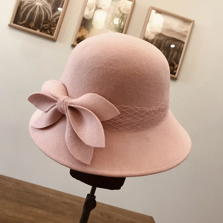 Зимняя женская фетровая шляпа Фибоначчи, винтажная шерстяная фетровая шляпа с бантом, котелок с широкими полями, Женская флоппи-Шляпа Дерби