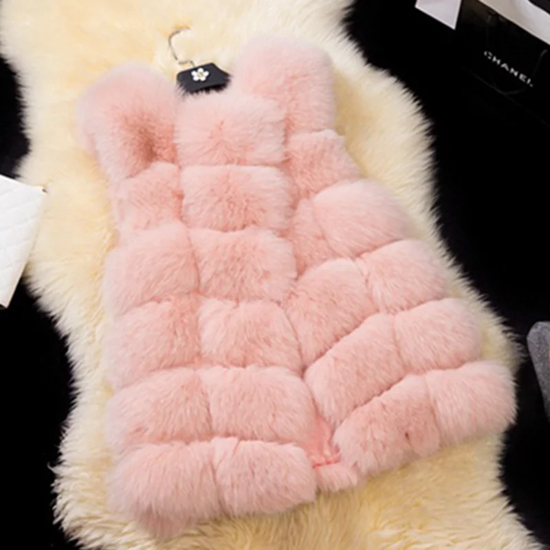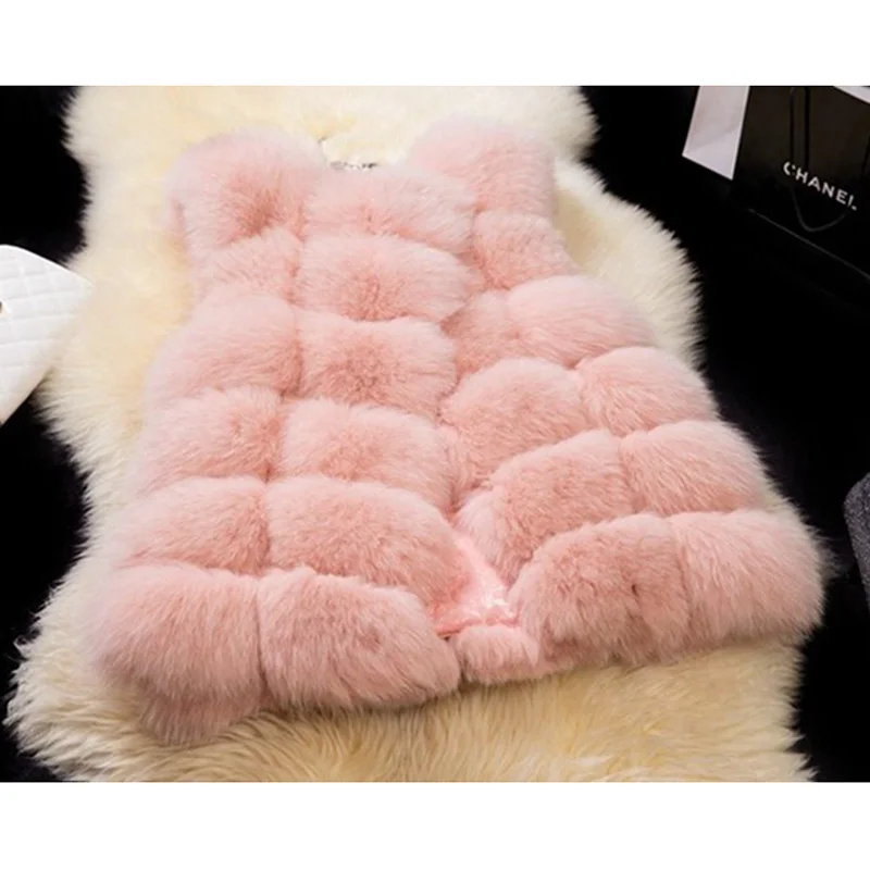 Розовая пушистая шуба из искусственного меха, качественная женская зимняя куртка 2019, элегантный повседневный жилет из натурального меха без рукавов, модная Роскошная Одежда больших размеров