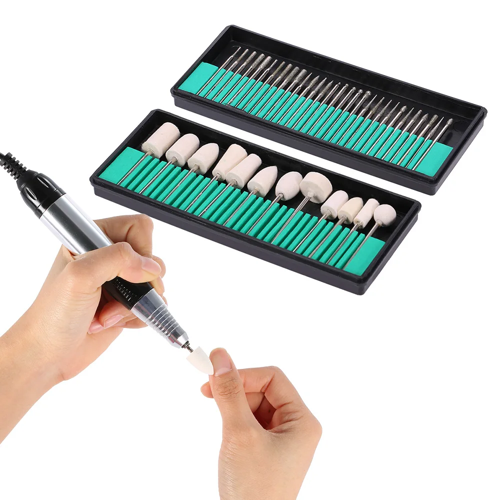 Содержит 30 сверл для ногтей и 13 шерстяных сверл для ногтей. Профессиональное сверло для ногтей для машины для дизайна ногтей, помогая полировать и переделать ногти.