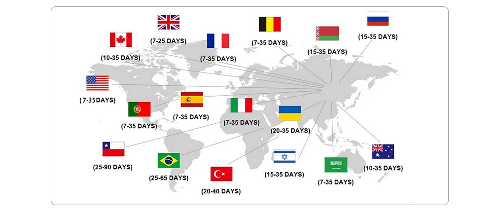 5. Мы используем ePacket для доставки в большинство стран, таких как США, Канада, Австралия, Российская Федерация, Германия, Франция, Испания, Соединенное Королевство и Новая Зеландия.