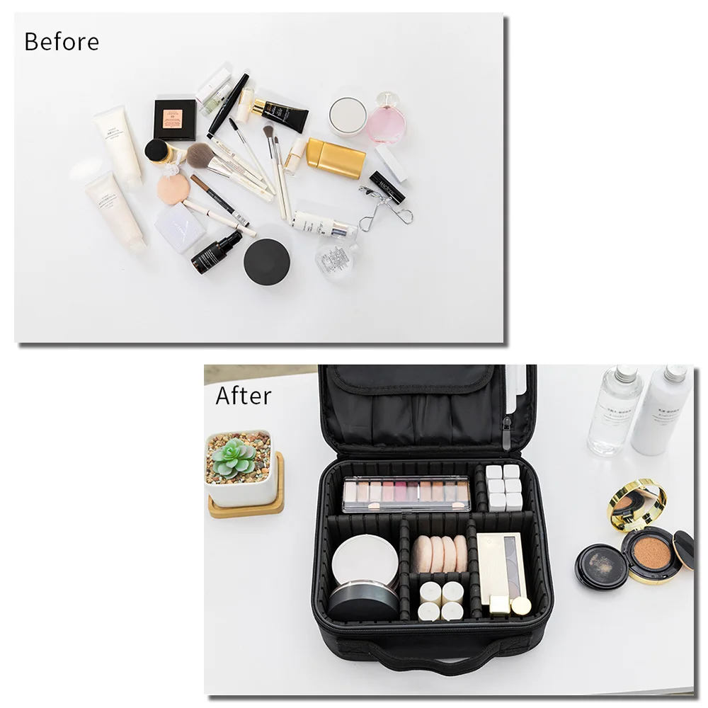 Большая емкость для организации макияжа. Съемные подушечки, подходящие для ваших размеров макияжа.