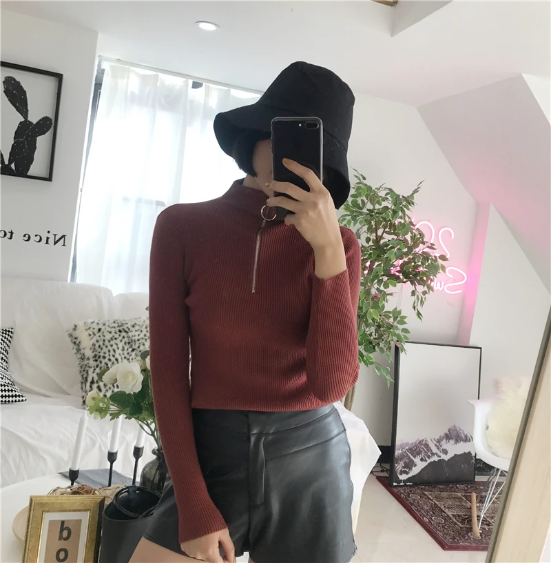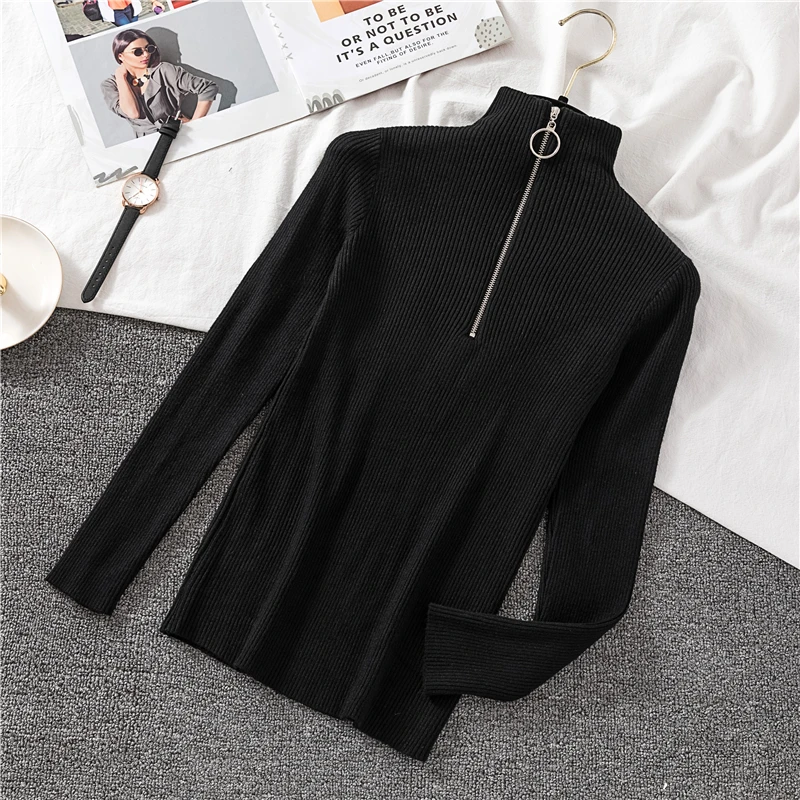 LUZUZI Повседневный свитер на молнии для женщин водолазка однотонный осенний Женский вязаный свитер пуловеры с длинным рукавом шикарный мягкий джемпер Топ