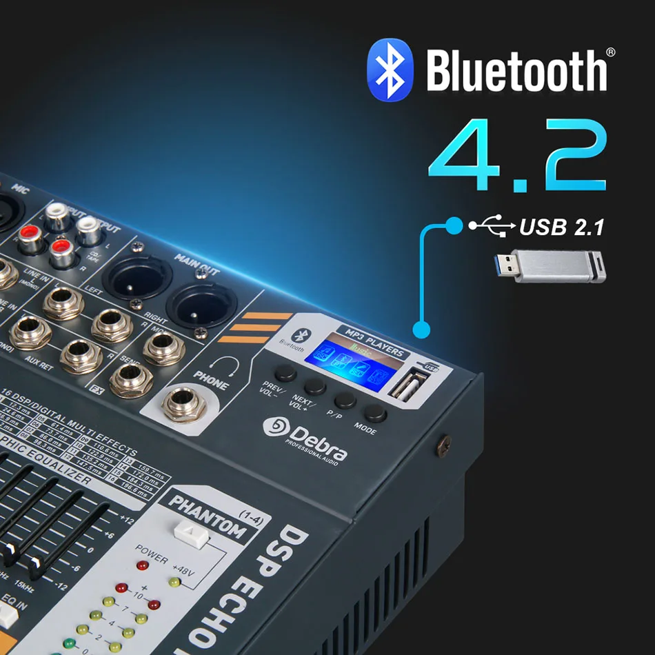 8 микшер каналов цифровой аудио микшерный пульт с 48В Мощность usb-слот для Запись этап