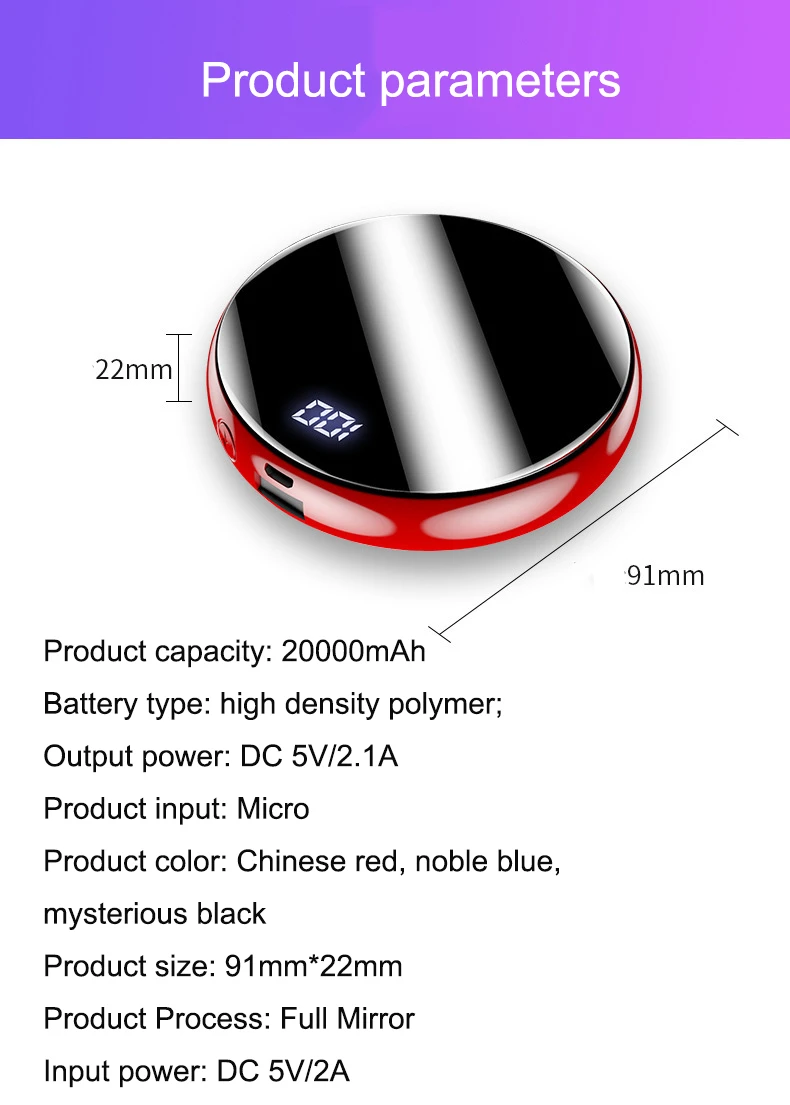 20000 мАч Большая емкость и мини портативный размер, легко взять его в любом месте