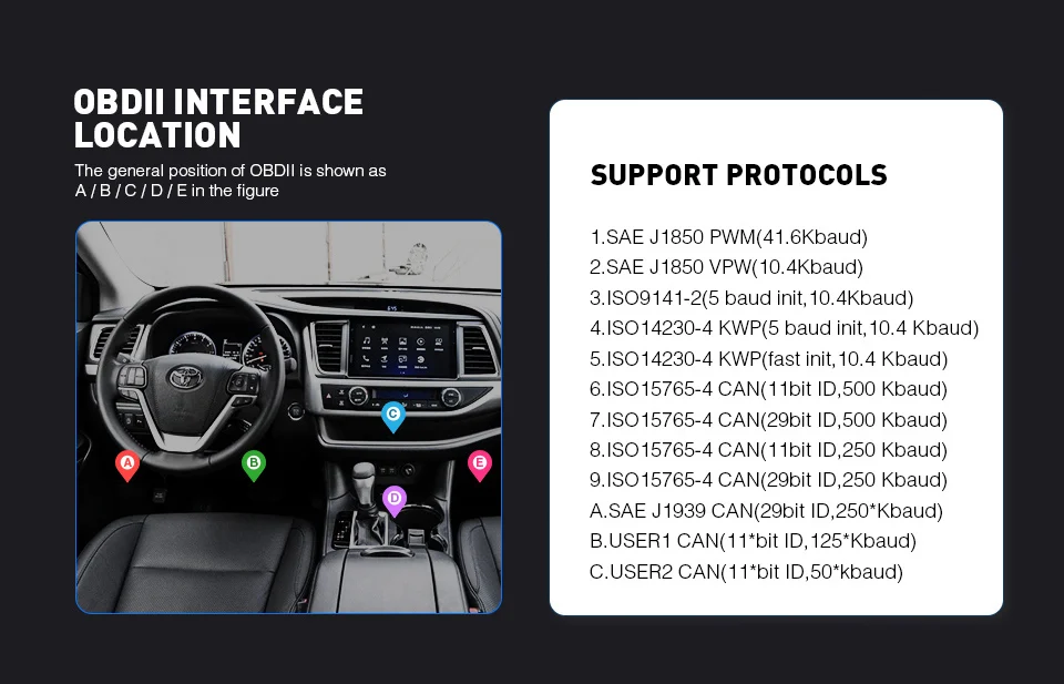 * Поддерживает все протоколы OBDII