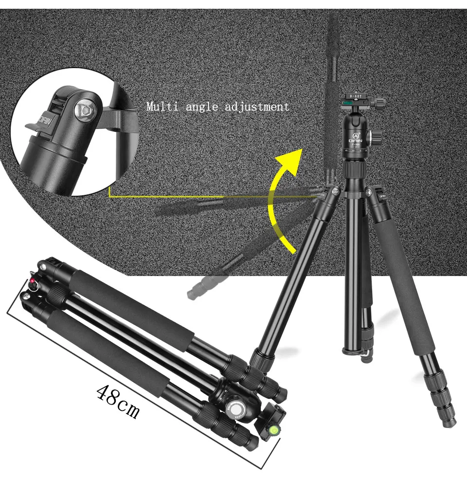 Введение: ★Центральная колонка инвертирована установки Центральная колонна инвертированная установка для осуществления самой низкой съёмки, макросъемки и специальной фотосъемки; ★Отсоединяемый монопод Он может быть превращен в монопод или трость самостоятельно, чтобы сделать вашу фотографию более разнообразной; ★Компактный и гибкий шланг 4 секции ноги могут регулировать высоту от 22,8 "(58 см) до 67,3" (171 см), с панорамной шаровой головкой, может быть перегнут на 180 градусов, складываемая длина всего 48 см, которая является супер портативной с сумкой для переноски штатива; ★Алюминиевая шаровая Головка для панорамной F-36A Литая шаровая Головка из алюминиевого сплава может поворачиваться на 360 градусов, помогая расширить диапазон активности камеры при панорамной съемке. (пузырьковый уровень помогает определить уровень и точный состав); ★Сильная стабильность 1,12 ''(28,5 мм) труба из алюминиевого сплава большого диаметра, грузоподъемность может достигать 26,5 фунтов (12 кг), обеспечивает безопасность и стабильность для вашей камеры. Технические характеристики: Материал: алюминиевый сплав Максимальная нагрузка: 12 кг Максимальная высота: 1710 мм (включая шаровую головку) Количество секций ног: 4 Тип блокировки: фиксирующая ручка Центральная колонка: Да. Крепится к секции ног для преобразования в полноразмерный монопод. Полная головка штатива Тип: шаровая Головка F-36A Пузырьковым уровнем для спускового механизма: Да Пластина быстрого крепления (QR): D-60T Посылка включает в себя: 1 * GT-428A штатив-Трипод 1 * шаровая Головка F-36A 2 * ключ, дюймовый стандарт 3 * Нержавеющая сталь ноги шип 1 * сумка для переноски 1 * Инструкция 1 * сертификат