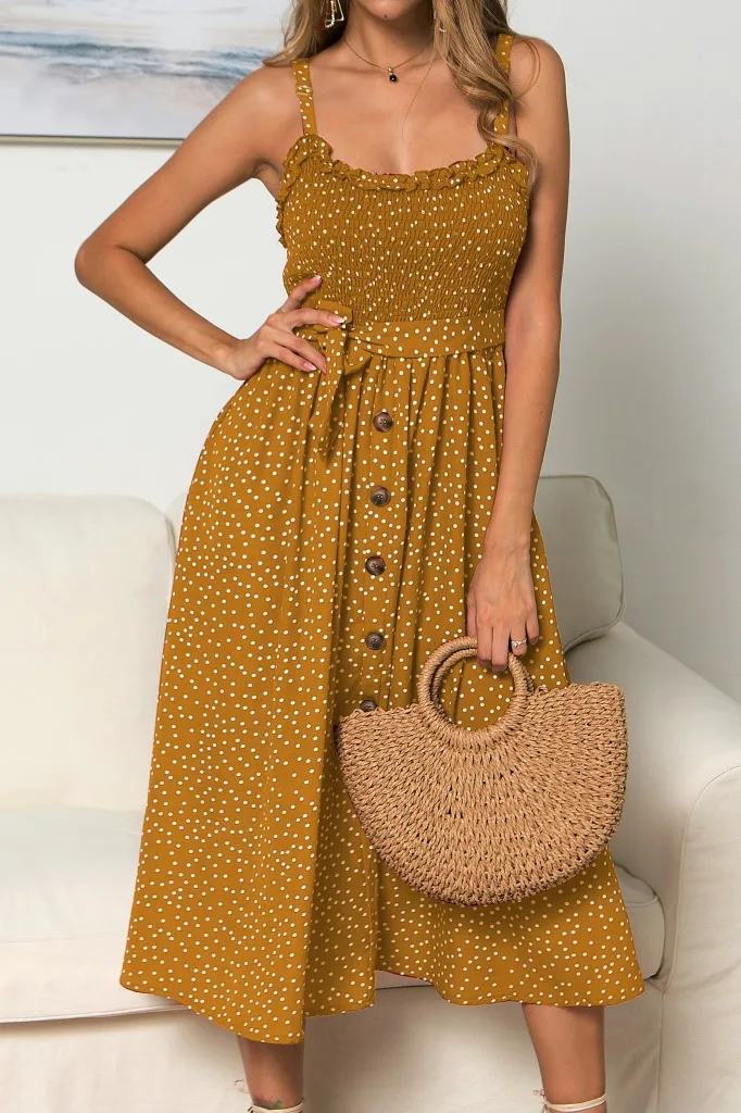 Повседневное хлопковое летнее платье в горошек, с оборками, на бретельках, вечерние платья без рукавов, милое женское сексуальное платье, дешевая одежда, Vestidos