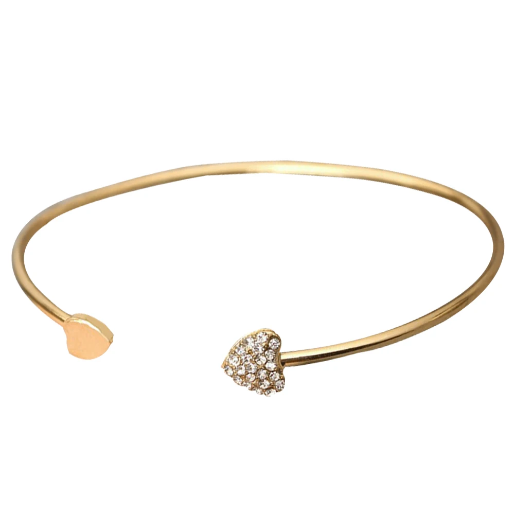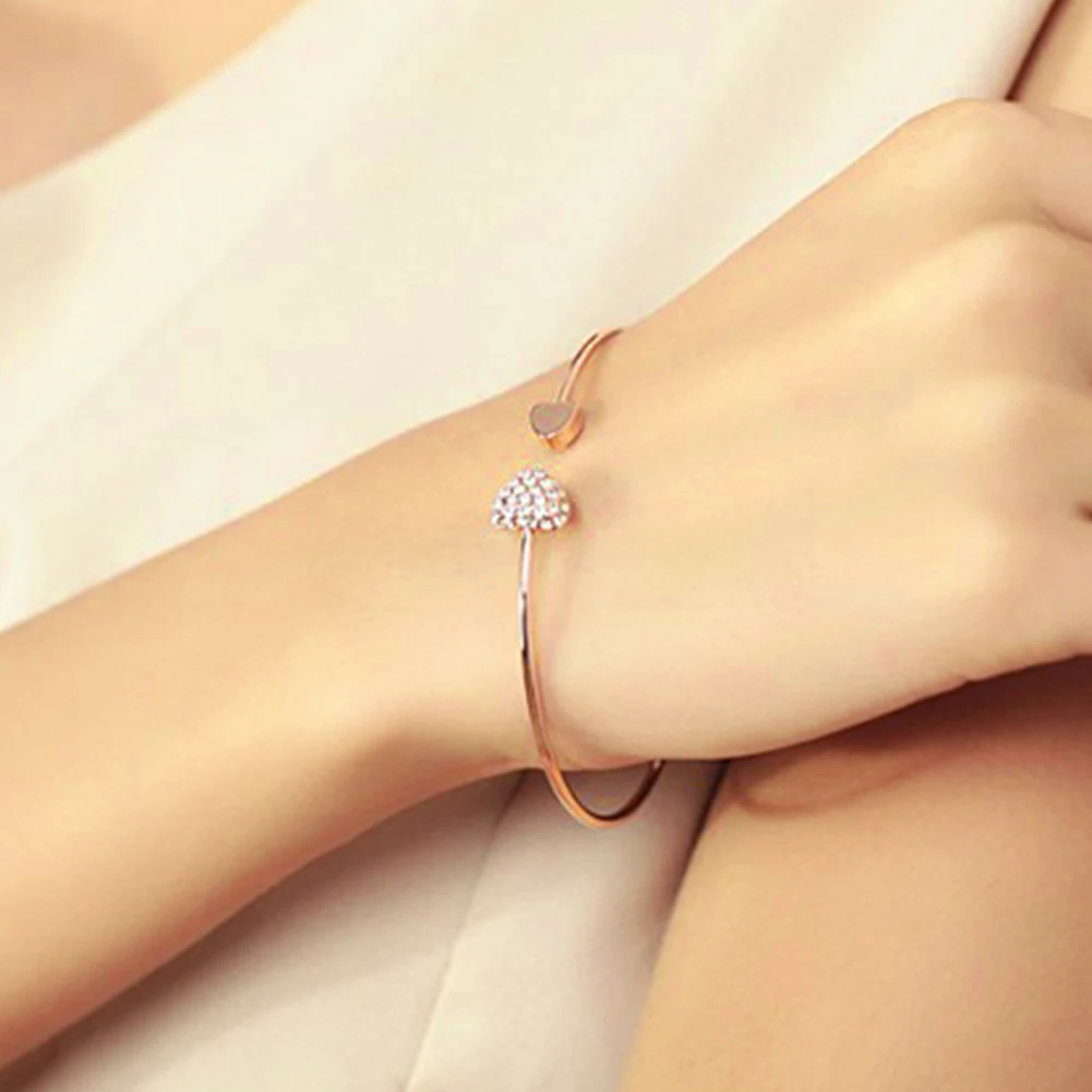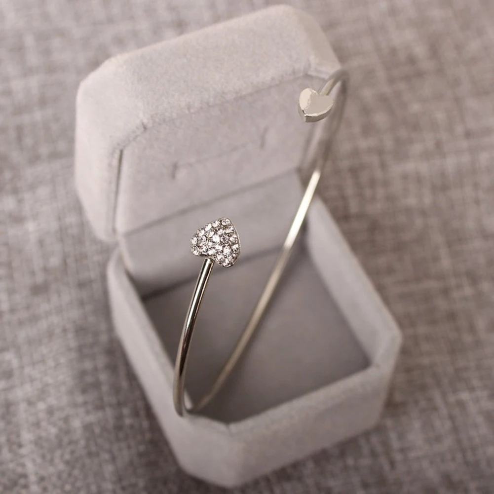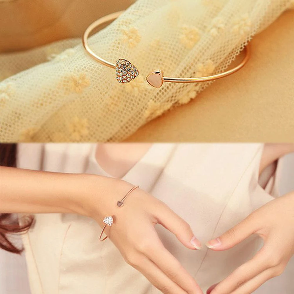 Женский Браслет-манжета с двойным сердцем и инкрустированным стразами, ювелирный подарок