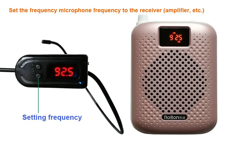 1. Включите основной источник питания микрофона, и на экране будет отображаться номер диапазона радиостанции. 2. Нажмите кнопку "+"-"для регулировки радиочастоты и выберите номер диапазона между 87,5 МГц ~ 108 МГц. (Примечание: выберите номер, который не дозирует выхода в локальных радиочастотных диапазонах, например 92,5) 3. Включите устройство с функцией fm-радио, растягивающейся антенной и настройте на режим fm-радио, настройте радиочастоту на то же, что и номер дисплея. И вы можете использовать беспроводной микрофон после того, как машина сопоставит пару с соотношением frenquency. 4. Поместите микрофон на голову и говорите в микрофон, вы можете усилить свой голос.