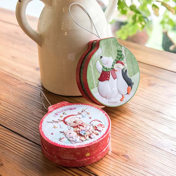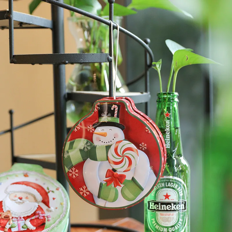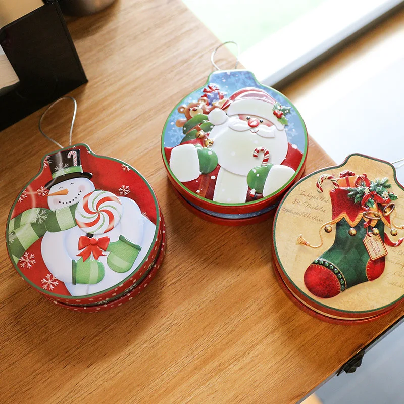 Рождественская круглая консервная банка подарочные коробки для конфет чехол для упаковки праздничные вечерние елки Висячие орнаменты украшения