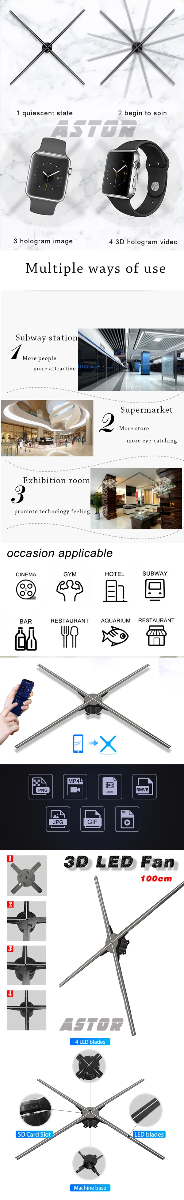 100 см 3D голограммный вентилятор светодиодный голограммный вентилятор 3D светодиодный вентилятор голограмма дисплей голографический эффект рекламсветильник управление через приложение
