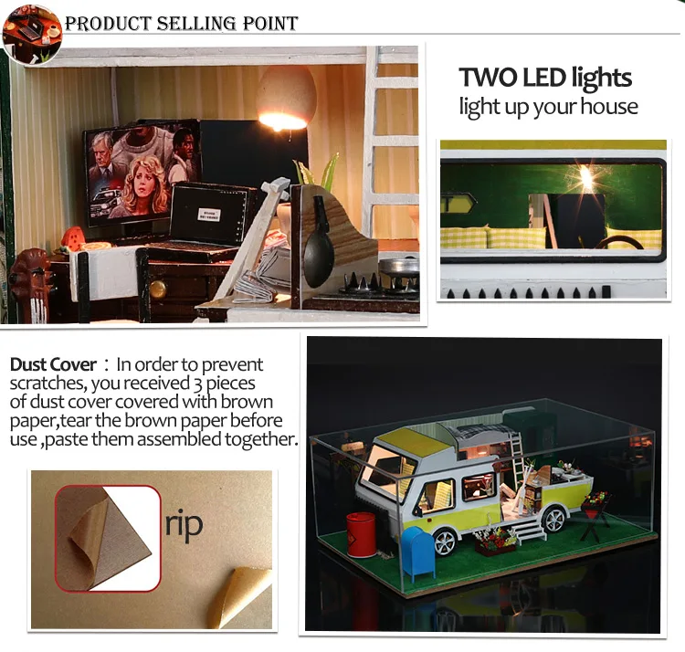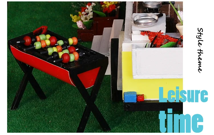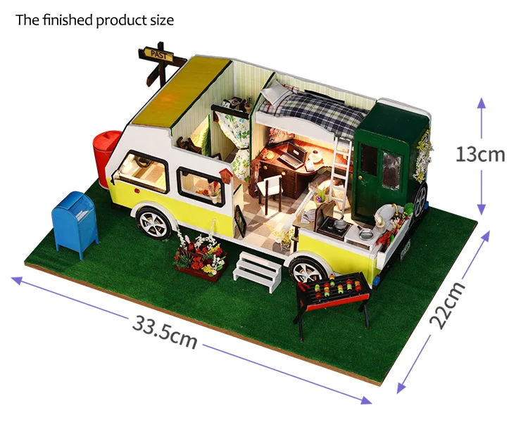 Кукольный домик включает в себя кабинет, кабина, обеденный стол, игровую комнату, кровать, гардероб, барбекю, завод.Это дом на колесахКукольный домик
