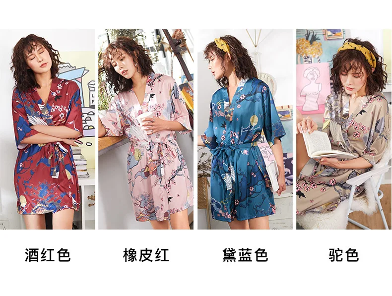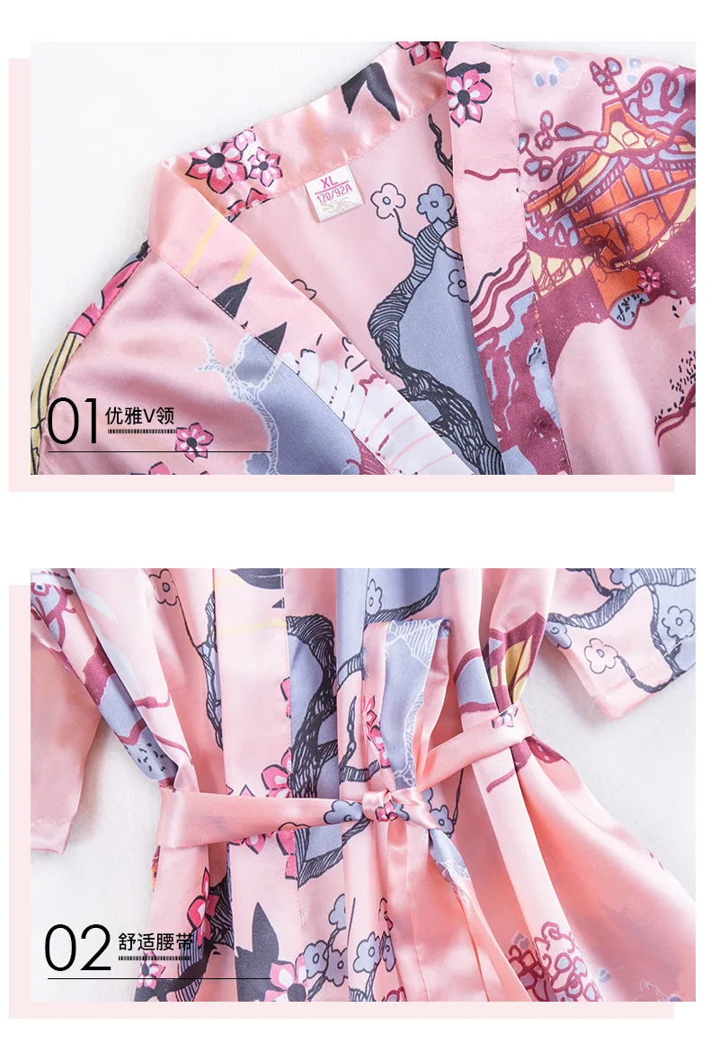 Летняя женская пижама с принтом, тонкая сексуальная ночная рубашка, Шелковый Кардиган со средним рукавом, домашняя одежда