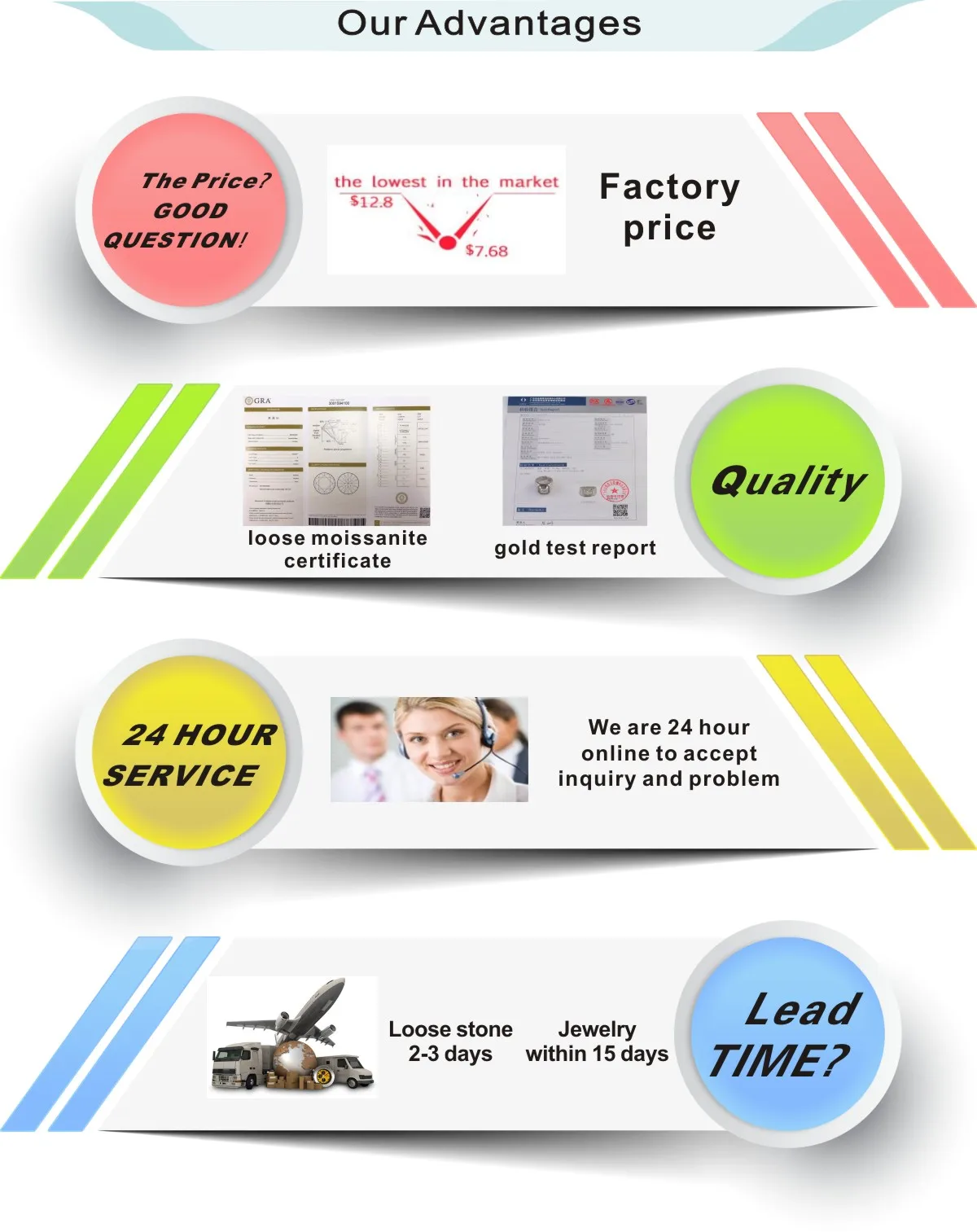 1. Customers Feedback: If there is any quality problems, please contact the seller customer service first, we will try our best to solve the problems. Please don't leave bad comments immediately, or we will refuse the requirements and resolve disputes through the third-party arbitration with normal but lengthy process . 2. For Customized Products Quality Assurance: After getting the products, there are 7 days to confirm the products’ quality-if the product is with quality problems and they are proved to be caused by us, the seller accept the no reason to return/refund within 7 days. But the buyer have to offer the evidence first. Beyond 7 days confirming time, no reason return & refund is unacceptable. 3. Beyond 7 days but within 30 days auto-entry warranty clause: Situation 1 Human reasons: Buyer's damage or buyer's personal willingness, the seller can offer the repairing, but the freight & Maintenance cost are borne by the buyer. Situation 2 Non-human reasons:If the product has quality problems or natural causes of stone falling off and metal fading, the seller bears maintenance costs, but the buyer bears freight costs. 4. Lifelong Warranty Policy: After 30 days, the seller guarantees the best quality and lowest price of maintenance and repair services. But all costs are borne by the buyer.